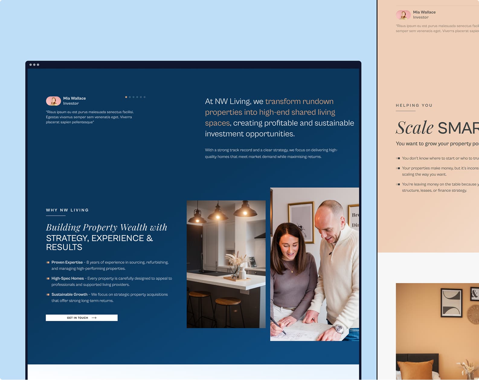 A full design and development project for NW Supported Living, an organisation focused on providing high-quality supporter living accommodation. With trust and clarity at the heart, we designed a clean, credible digital presence to support their mission and connect with both landlords and care providers.